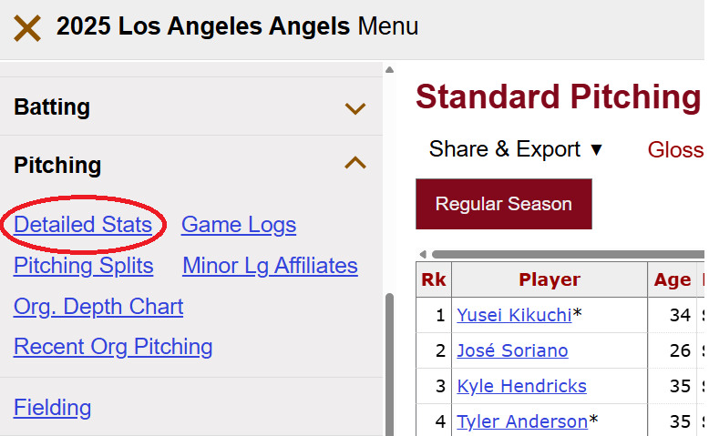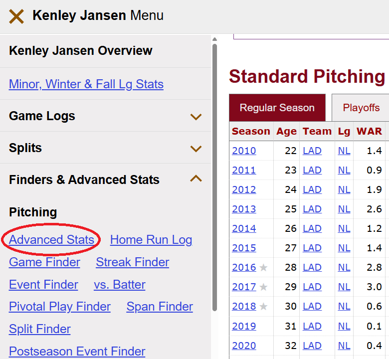 To access that page, click Finders & Advanced Stats in the navigation bar on player pages, then click Advanced Stats.